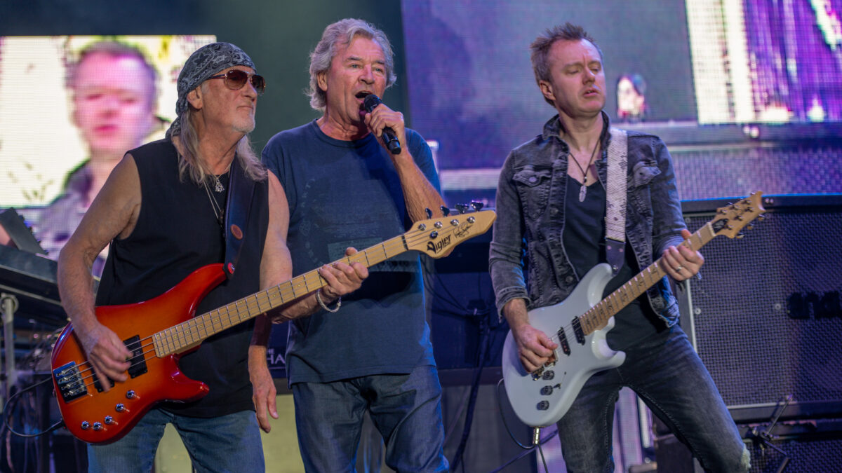 Deep Purple/ od lewej : Roger Glover, Ian Gillan, Simon McBride, 2022 r. /źródło zdjęcia: wikipedia.org